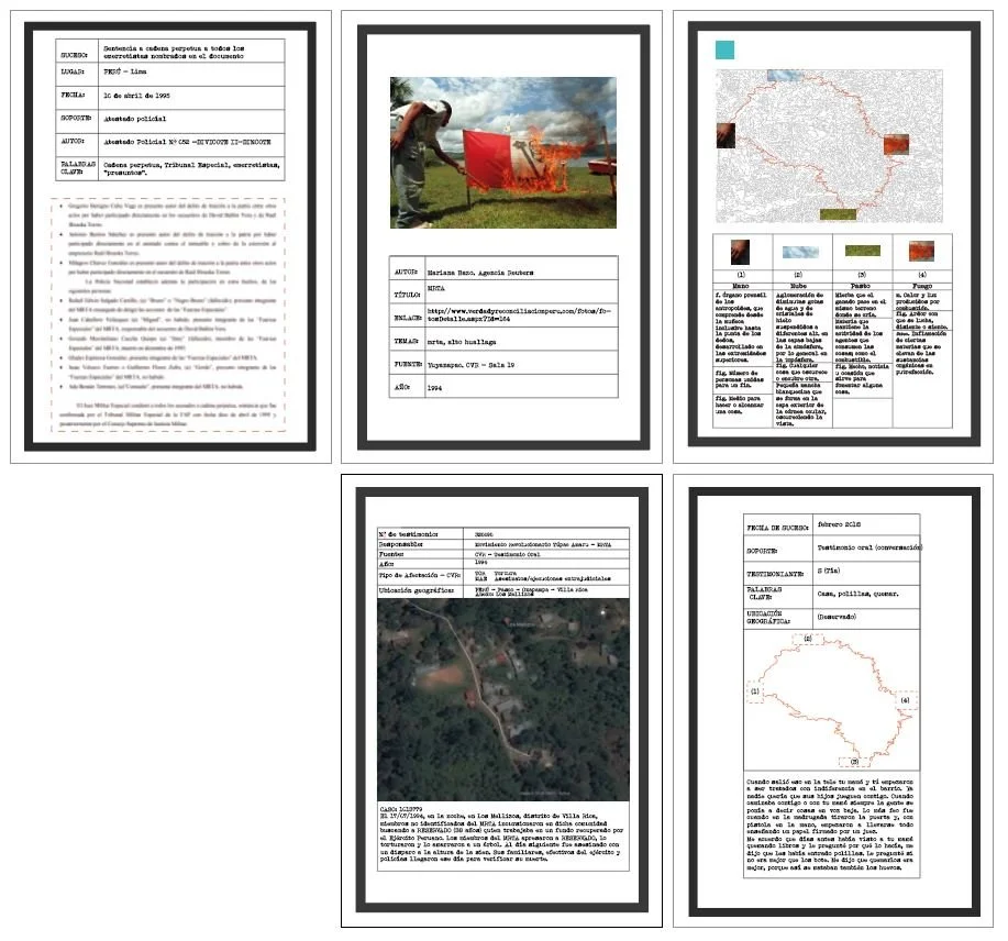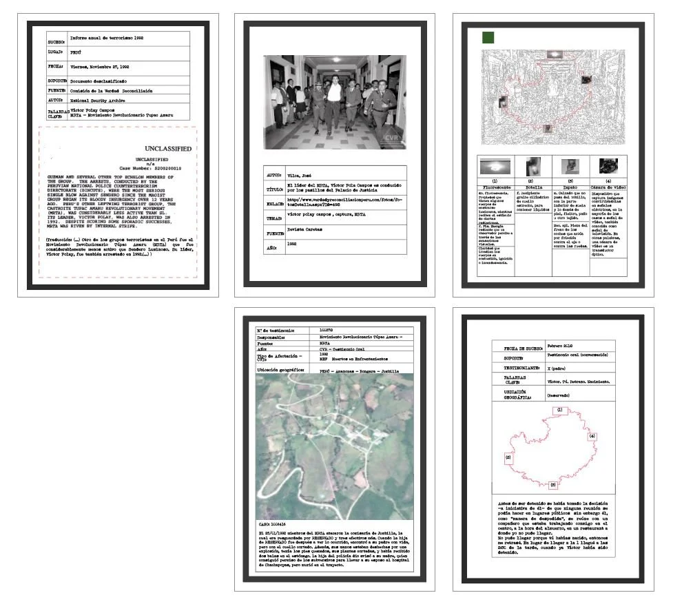 In a playful and experimental gesture, I transform photographs documenting the actions of the Túpac Amaru Revolutionary Movement (MRTA) into affective maps and territories, rescuing elements located on the peripheries of these images as an analogy for the stories woven at the margins of what we know about our recent past.