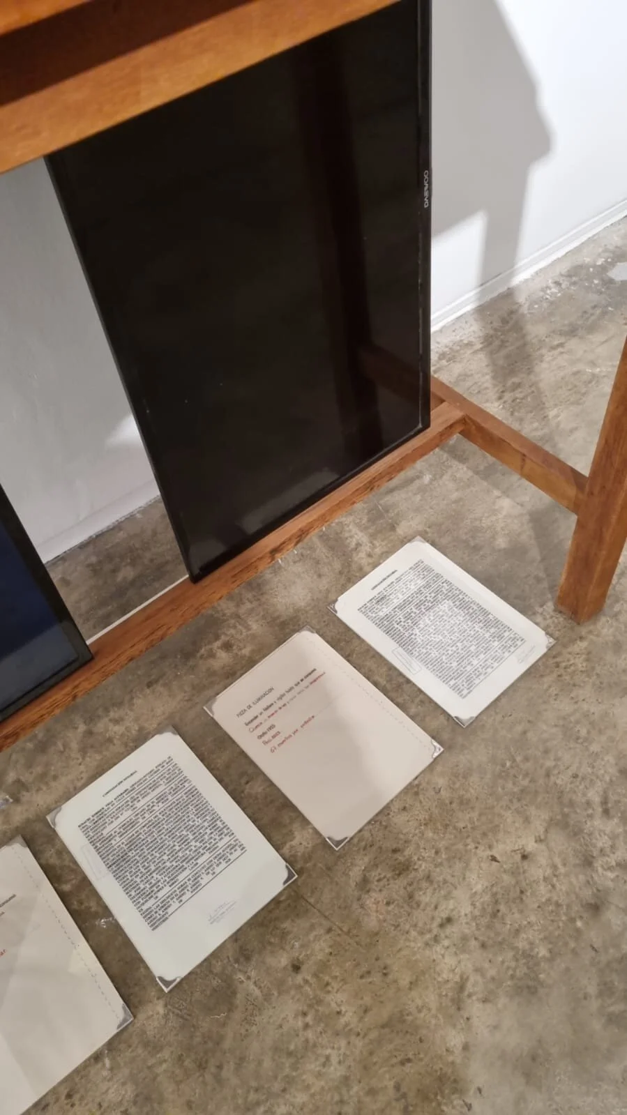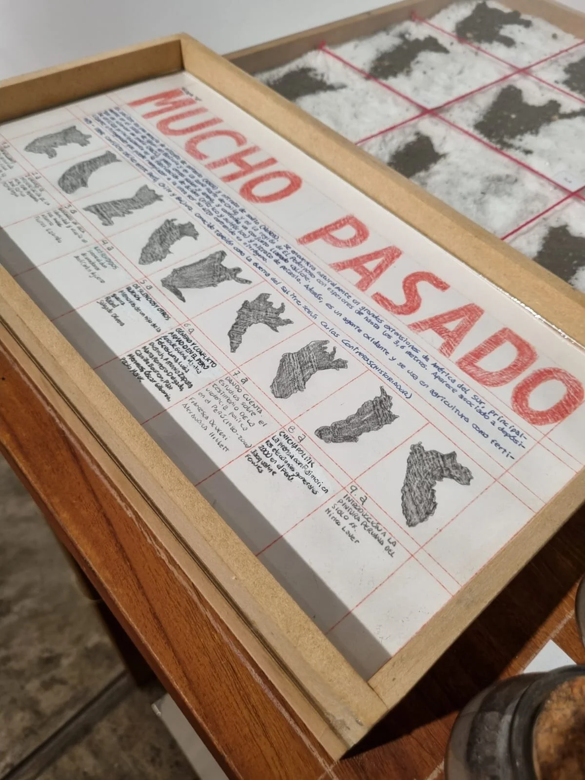 The work is an installation that interrogates how knowledge about Peru is produced, circulated, and consumed. It forms part of a series of artistic inquiries rooted in poetic, autobiographical reflections through which Isaac Ernesto has critically engaged with his own personal and social history. In this piece, the artist invites us to observe his critical process through various elements woven together by conceptual and material exercises.